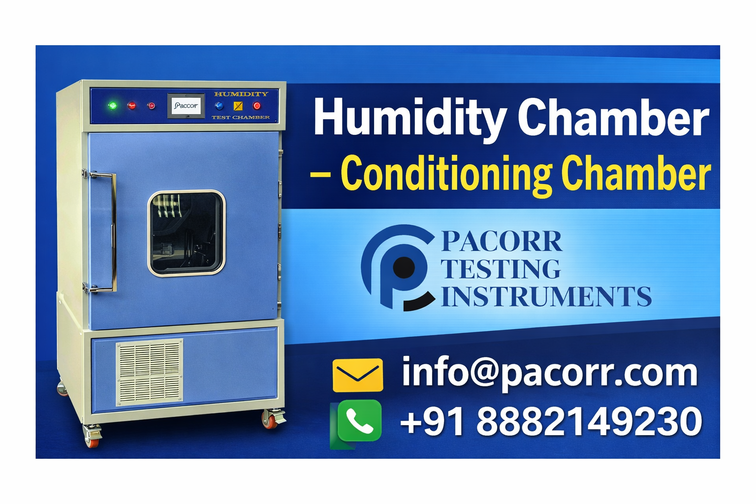 Humidity is one of the most critical environmental factors that directly affects the quality, performance, and durability of materials and products. Our Humidity Chamber – Conditioning Chamber is designed to provide precise and controlled humidity environments, helping industries and laboratories test how products respond to real-world moisture conditions.
