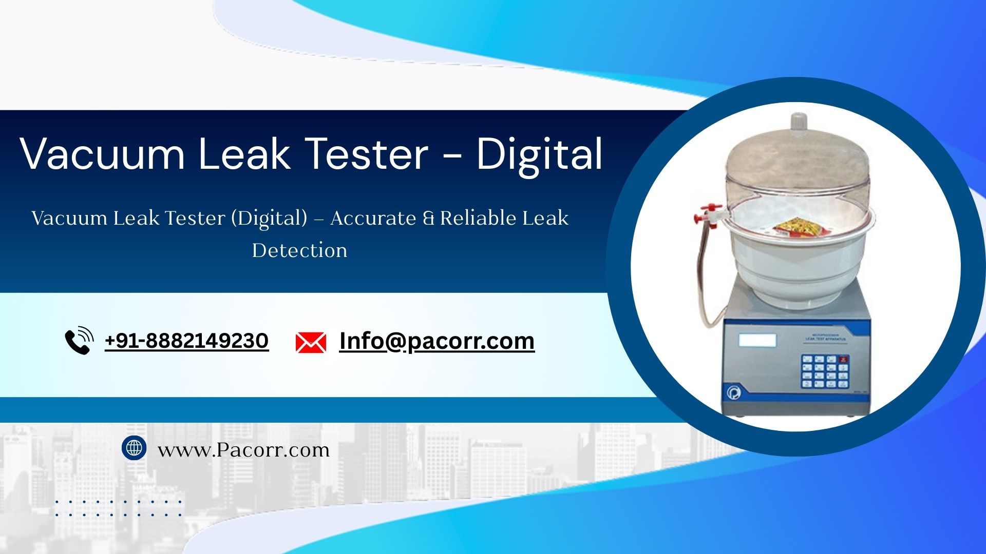 Pacorr is recognized for manufacturing reliable and precise testing instruments that meet modern industry requirements. Its Vacuum Leak Tester is designed with a focus on accuracy, durability, and ease of use. Along with quality equipment, Pacorr provides technical support to help customers maintain long-term testing performance.