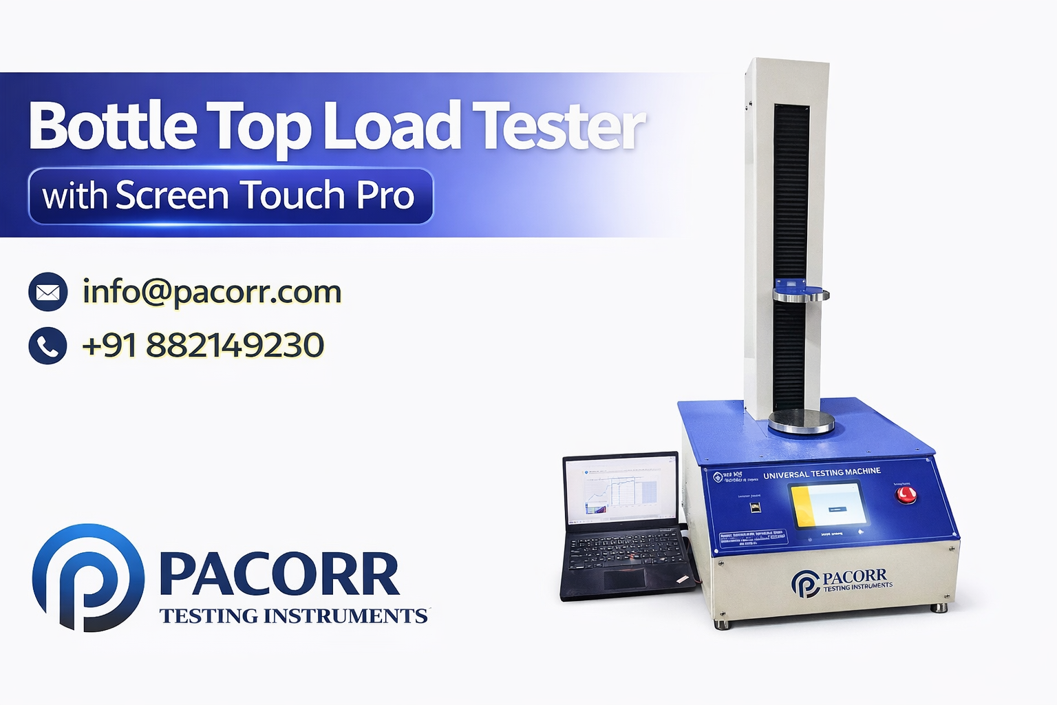 Bottle packaging plays a vital role in protecting products during storage, stacking, and transportation. Weak bottles can lead to deformation, leakage, and product loss—impacting both safety and brand reputation. With the Bottle Top Load Tester with Screen Touch Pro by Pacorr, manufacturers can accurately measure the vertical load capacity of bottles and ensure consistent packaging performance.
